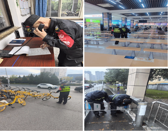 当大部分师生还在睡梦中,安保人员的巡逻脚步已经踏碎了清晨的露水。双节期间,加大了校园巡逻频次和密度,采取人防、技防和“步巡+车巡+定点值守”的方式,对校门、楼宇、重点区域、校园死角等实行更加严格的巡逻监控排查,实现24小时全天候、无死角全覆盖,织牢校园“安全防护网”。